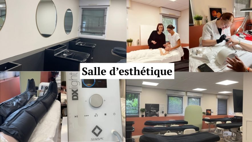 1 salle de pratique en esthétique : 6 tables d’esthétique avec évier et bac, des appareils d’esthétiques : Cellu Tech, Presso-esthétique, DXLIGHT Starvac et autres machines (vapozone, etc.). Produits nécessaires à la pratique (soin, épilation, maquillage et manucurie)